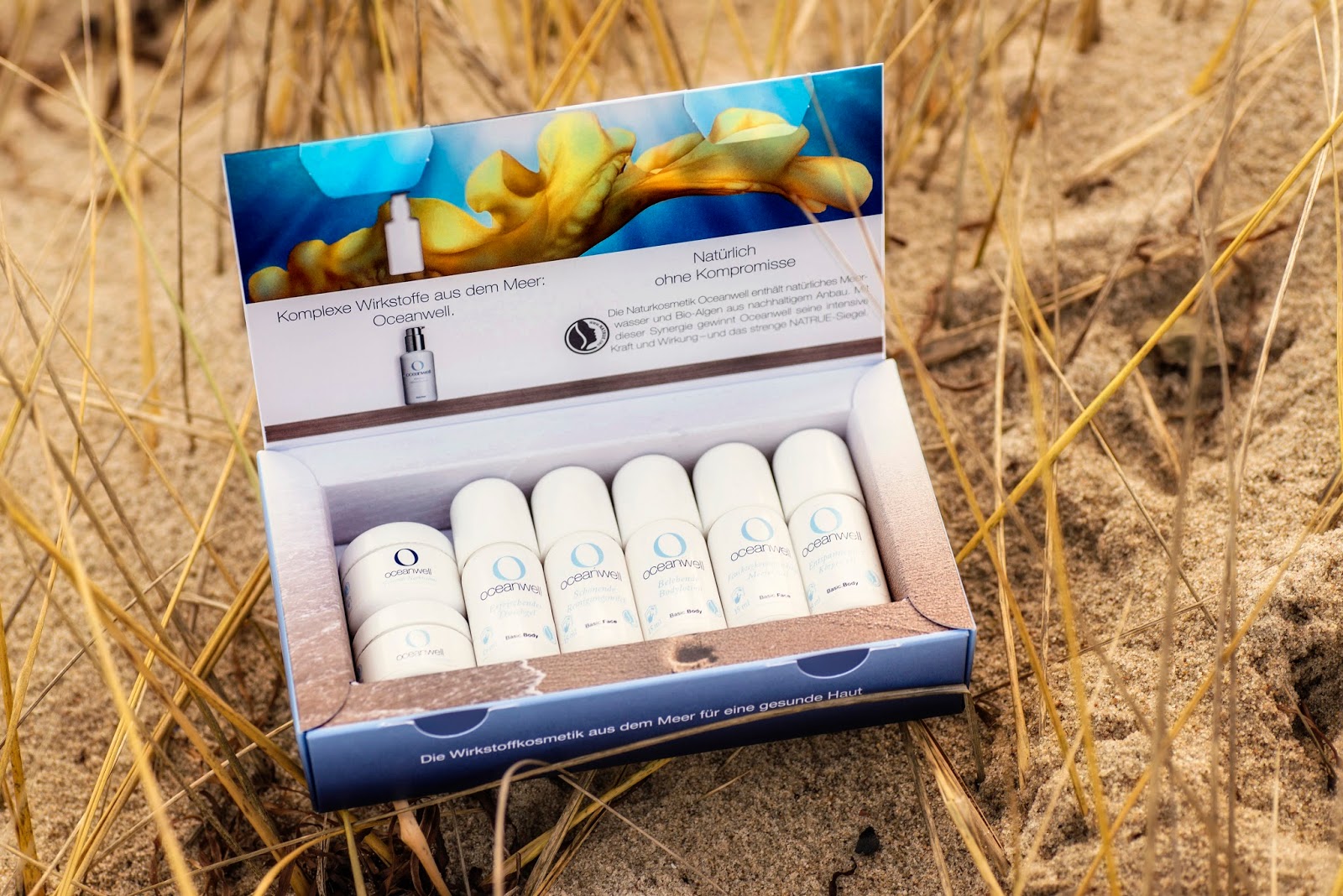 Es gab noch weitere Produkte die ich testen durfte. Es gibt jetzt seit Neustem ein kleines Probier Set mit ausgewählten Oceanwell Produkten im Mini Format. Darin sind sieben Pflegeprodukte aus der Oceanwell Basic Line enthalten und man hat für den Urlaub alles dabei was man braucht. Alle Produkte enthalten die Wirkstoffe aus dem reinen Extrakt der nachhaltig kultivierten Laminaria-Algen. Auf Reisen sind sie extrem praktisch weil sie untereinander kombinierbar und vielseitig zu verwenden sind: