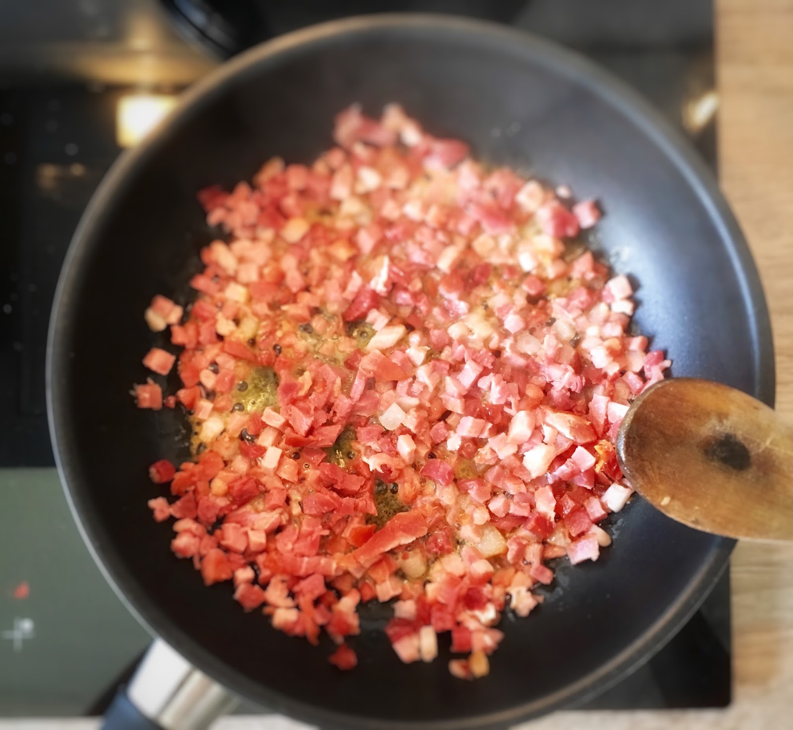 Die leckeren Schinken Würfel habe ich noch schön knusprig angebraten.